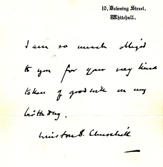 • 1954 Thank you letter from Winston Churchill