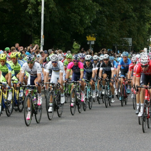 Banners on our gates attracted the attention of the local press. It’s not as certain that passing helicopters picked up the cycling frieze laid out on the front lawn to mark the occasion, but we were more than happy to play our part in local celebration of this great cycling event.